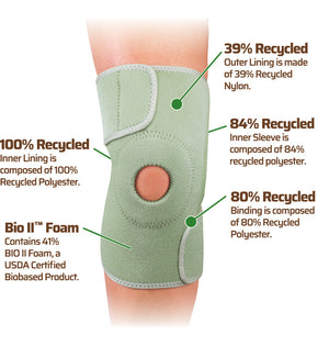 Our CleanPrene Knee Support is made of the cleanest materials & ingredients on Earth- including sugar cane, oyster shells, and recycled plastics. Featuring dual straps for adjustable compression, this knee brace delivers all the functionality you expect, without the moral hangover.